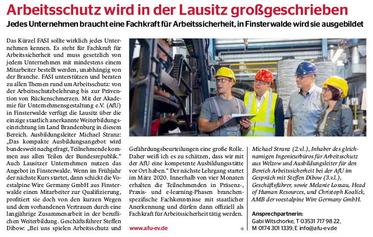 Lehr- und Beratungstätigkeit dokumentiert in der Herbstausgabe (2019) des Lausitz Magazins:![]()
